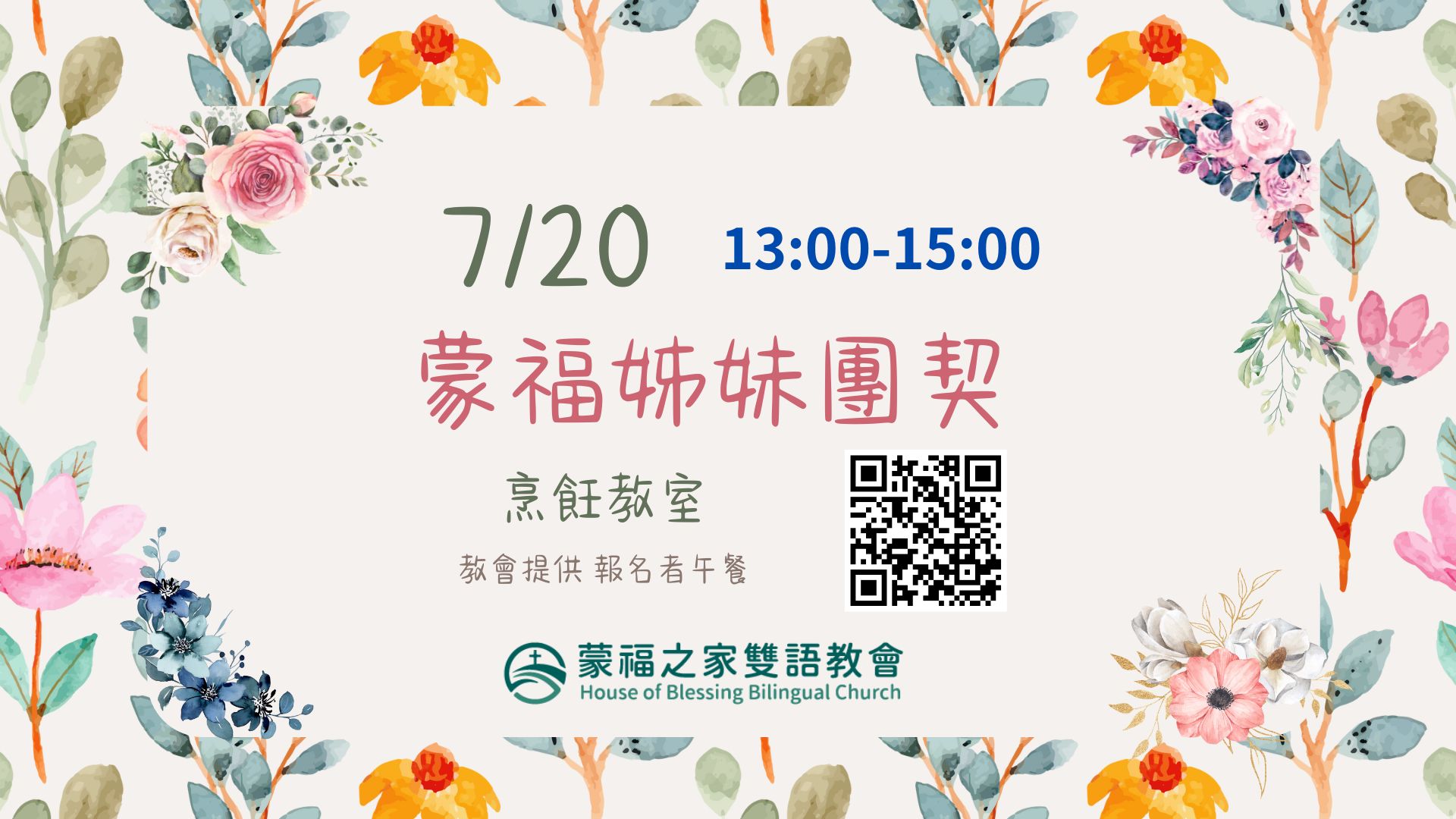 🍽教會提供報名者午餐, 也歡迎姊妹們帶點心或水果來分享!